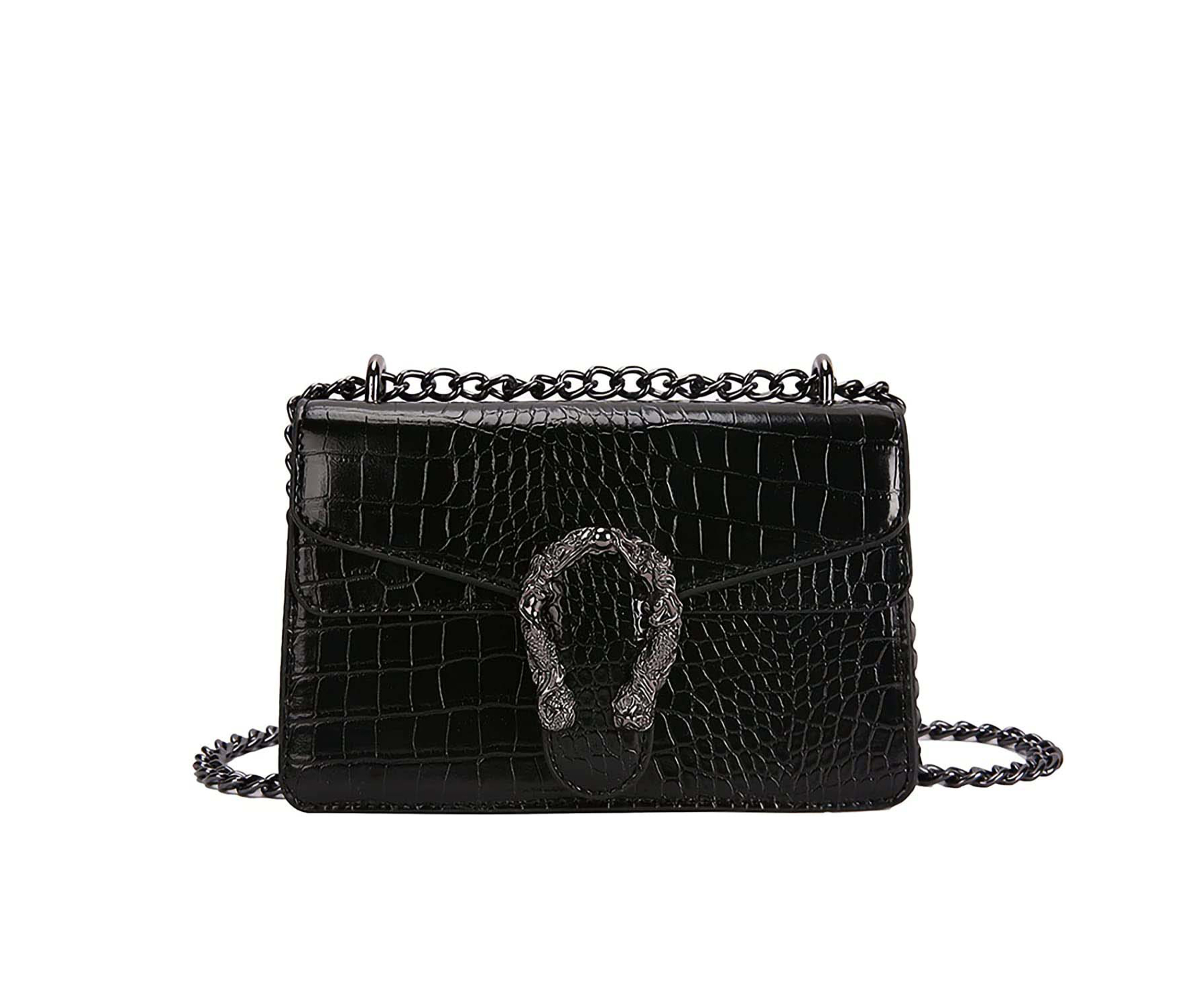 Crossbody Shoulder Evening Bag for Women - Snake Printed Leather Messenger Bag Chain Strap Clutch Small Square Satchel Purse