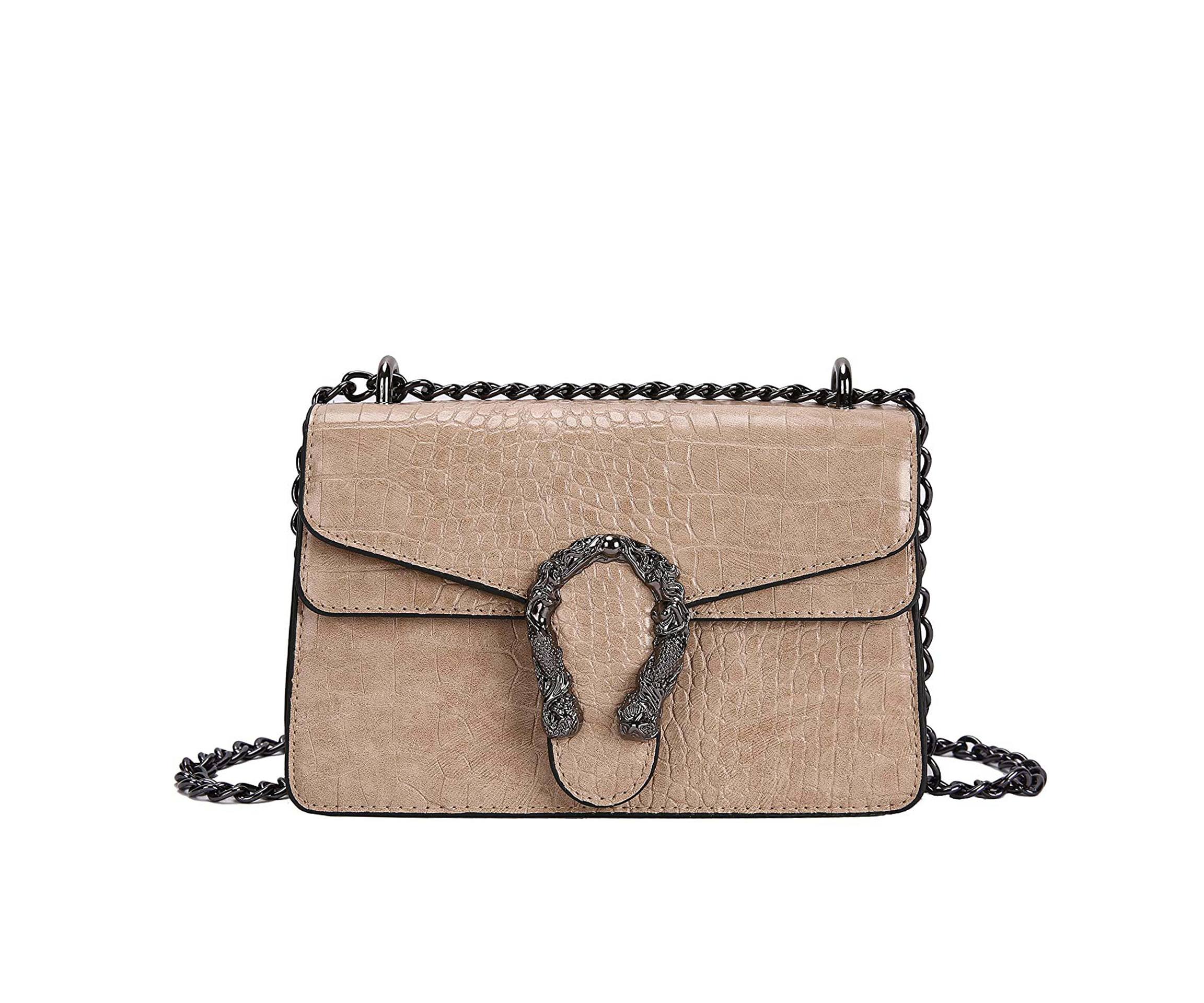 Crossbody Shoulder Evening Bag for Women - Snake Printed Leather Messenger Bag Chain Strap Clutch Small Square Satchel Purse