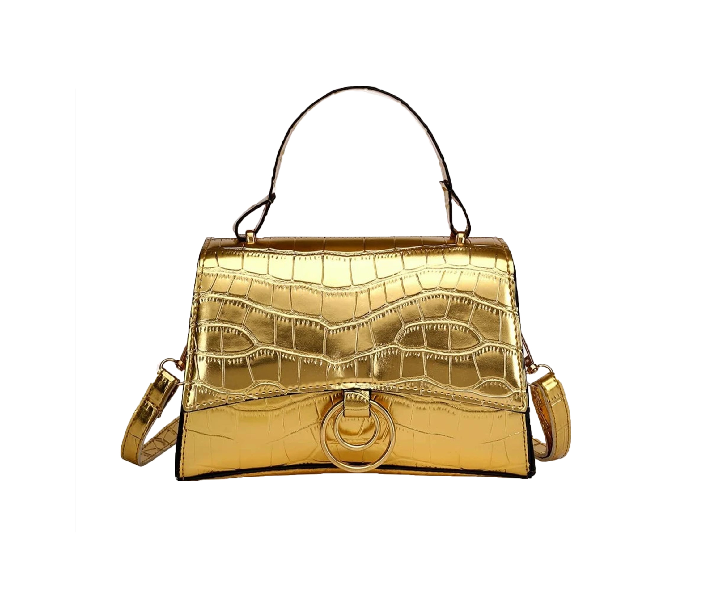 Metallic Croc Embossed Satchel Bag
